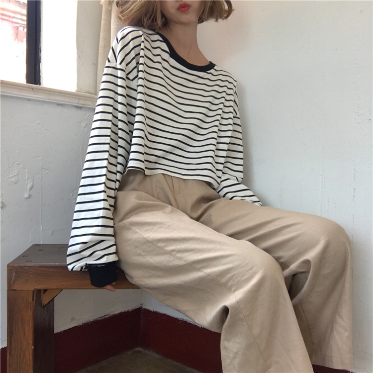 秋裝女裝韓版寬松百搭休閑褲顯瘦闊腿褲九分褲學生高腰直筒褲長褲
