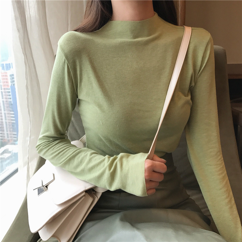 新款復古簡約基礎立領T恤高腰顯瘦中長款半身皮裙時尚套裝兩件套