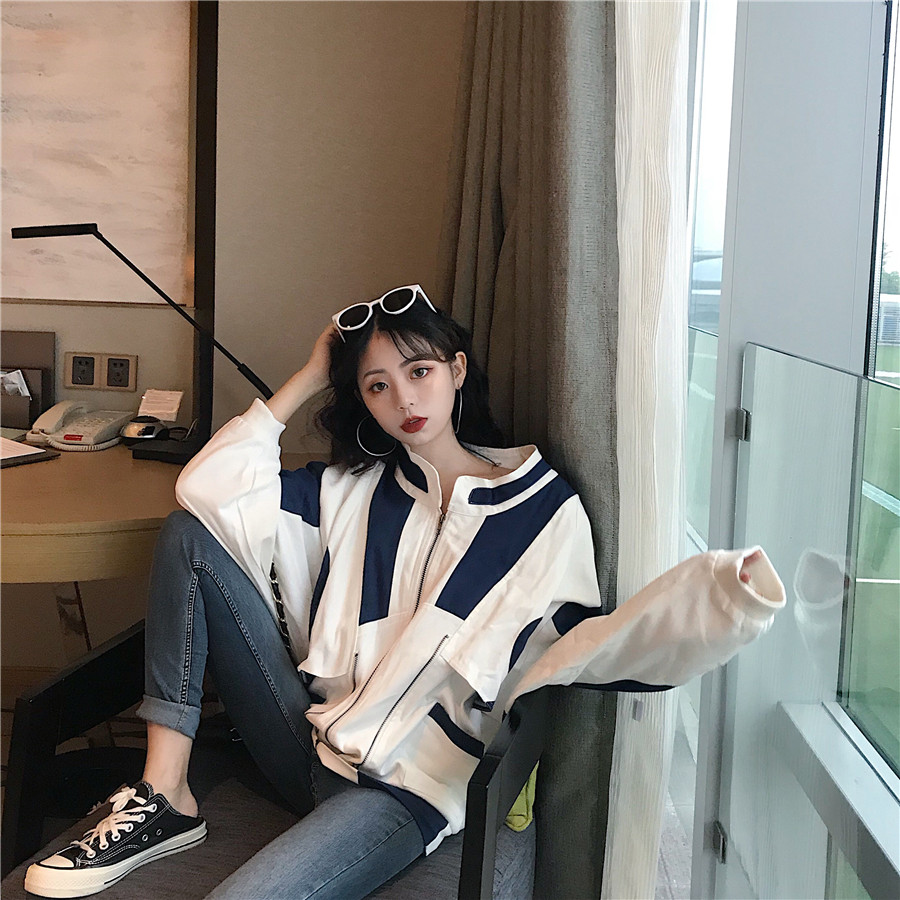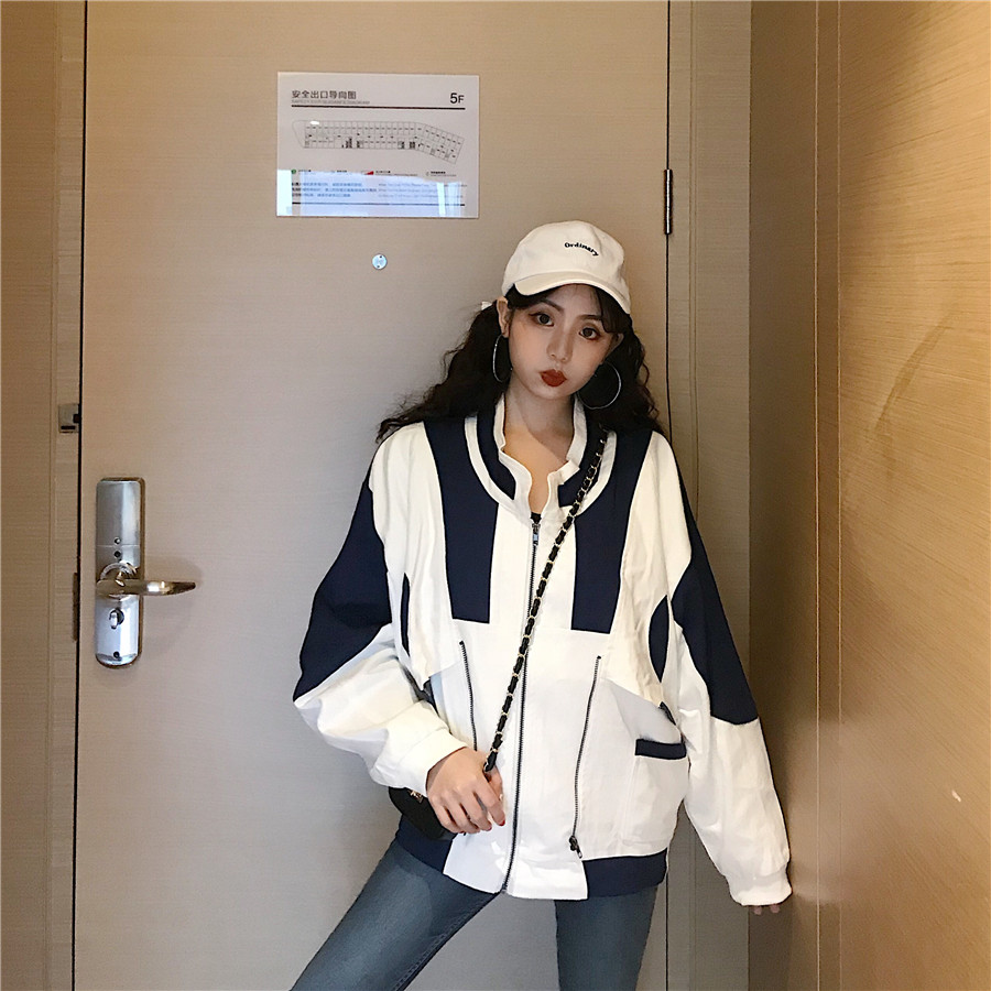 / 網紅同款秋裝女2018新款小香風拼色寬松百搭短款夾克棒球開衫外套
