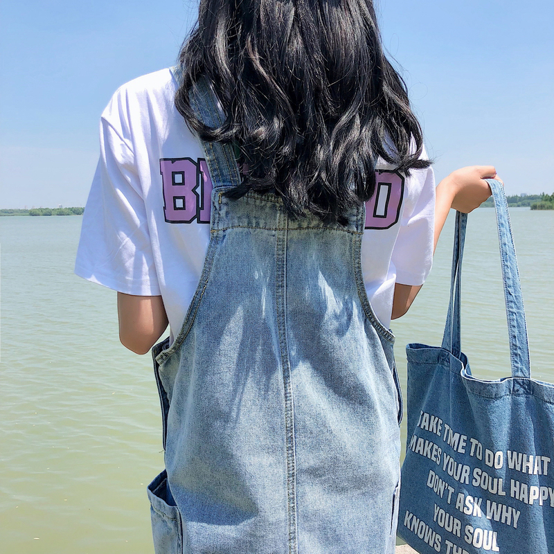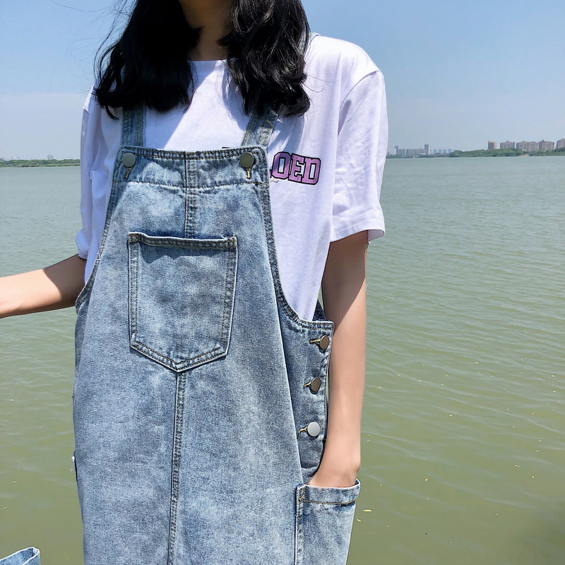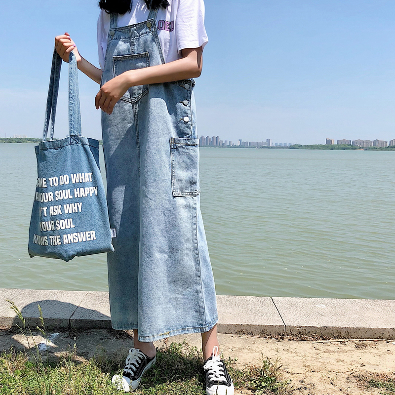 / 連衣裙女夏新款韓版女裝口袋水洗寬松牛仔背帶裙休閑百搭A字長裙