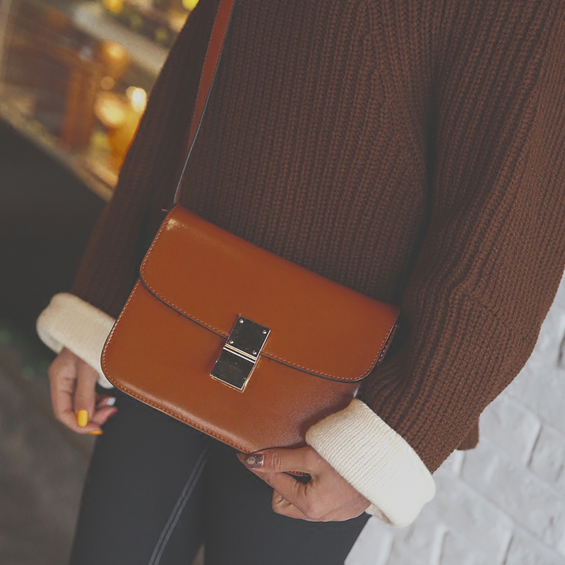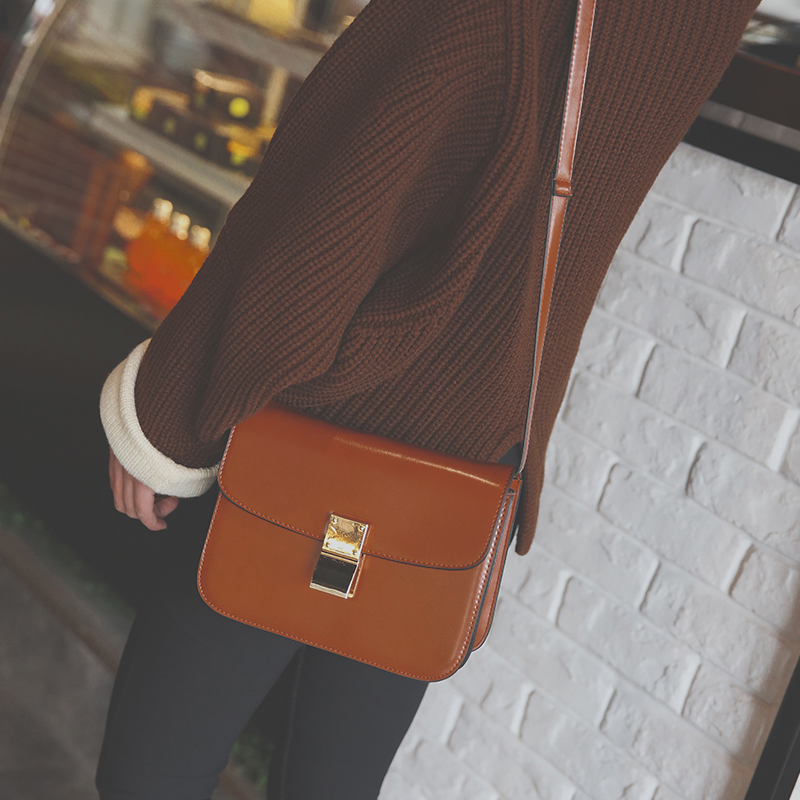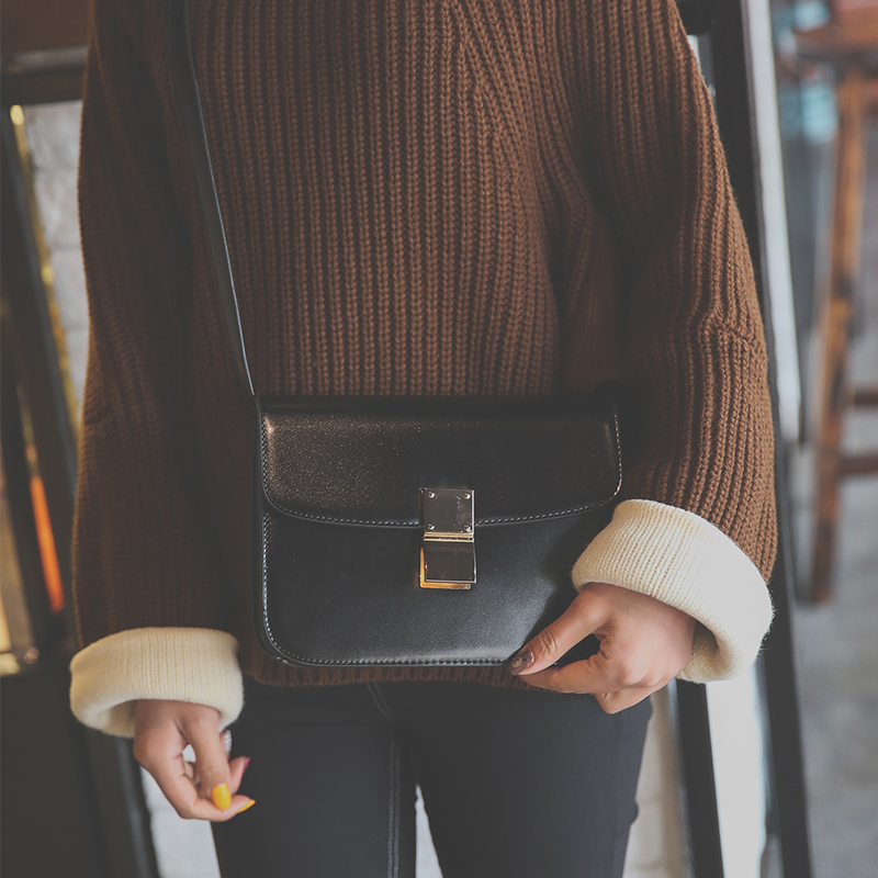 新款日韓版單肩斜挎包女小包簡約迷你小方包潮復古鎖扣豆腐包