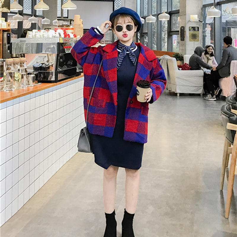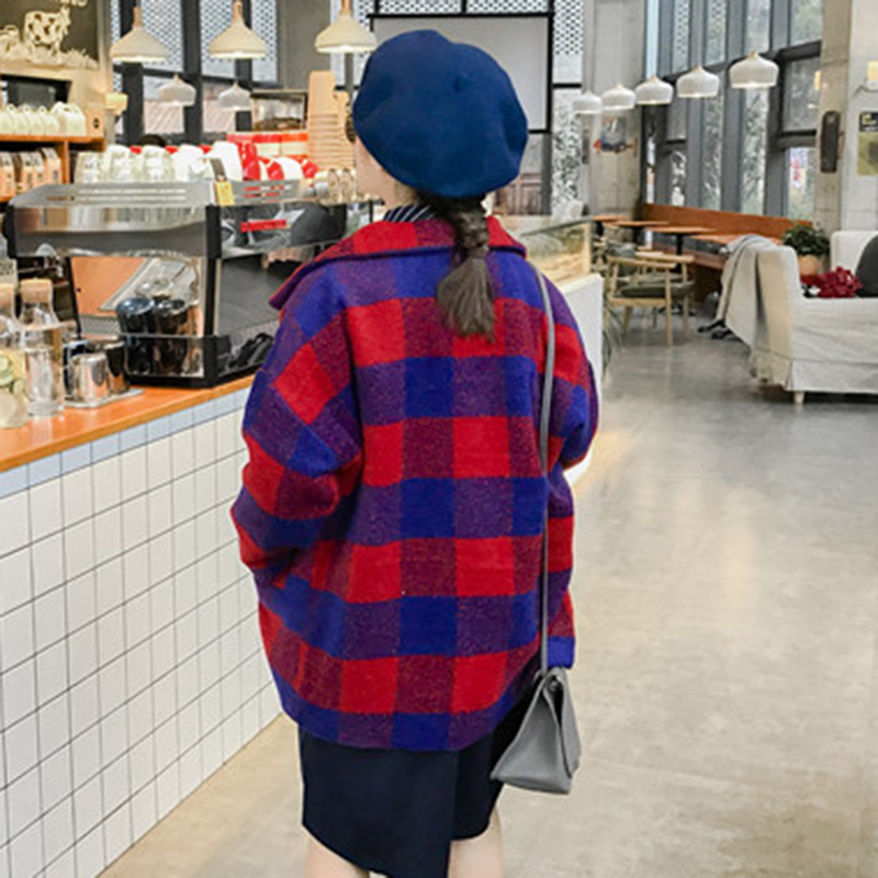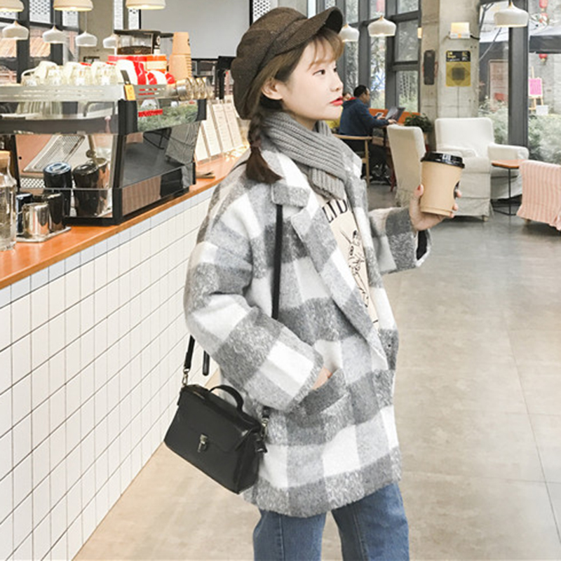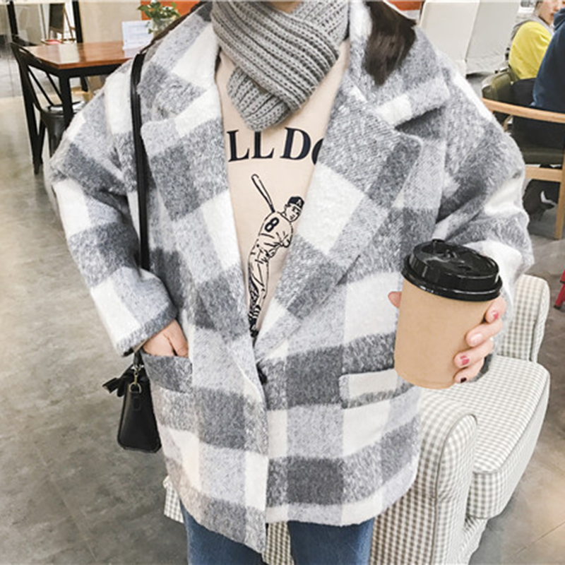 復古格子西裝領呢子外套女秋冬新款學生寬松2018流行毛呢大衣女裝