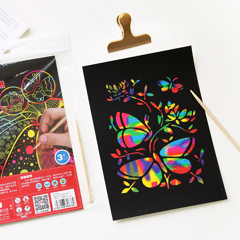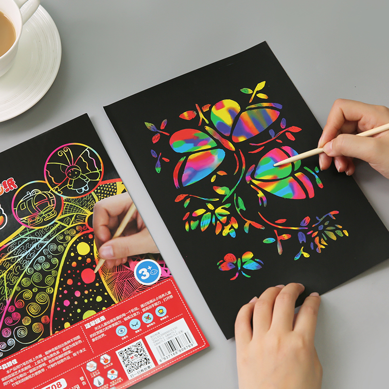 云木雜貨 炫彩刮畫紙16K兒童刮畫繪畫填色紙創意手繪無毒涂鴉紙