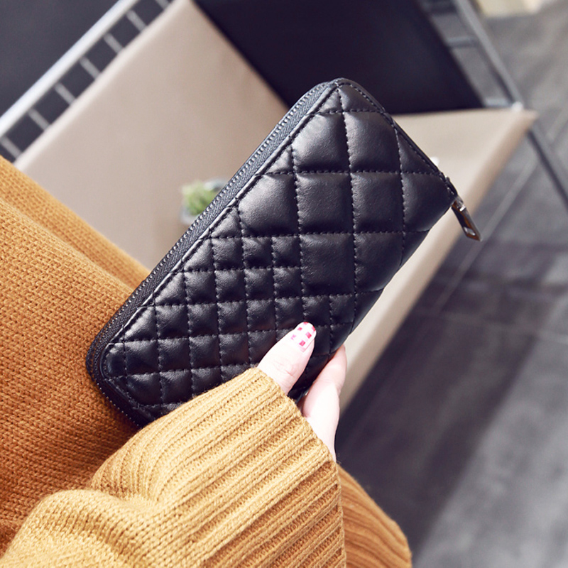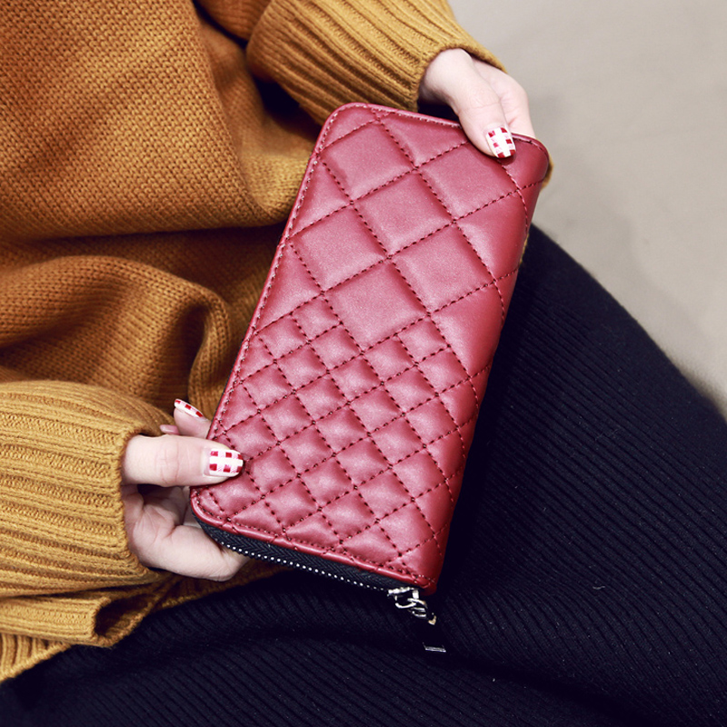 新款韓版菱格長款女士錢包拉鏈大容量手拿包多卡位錢夾手機包