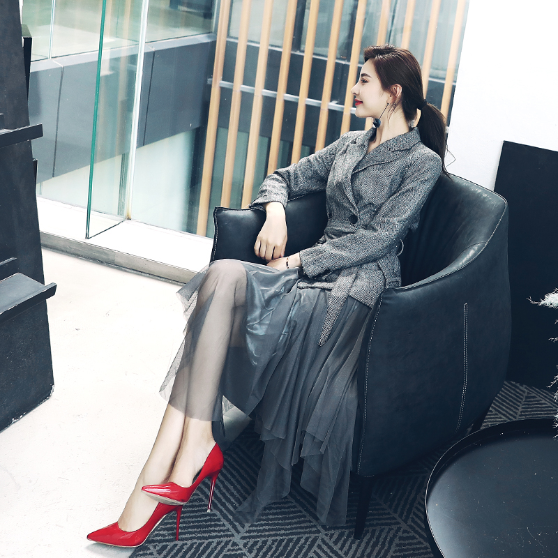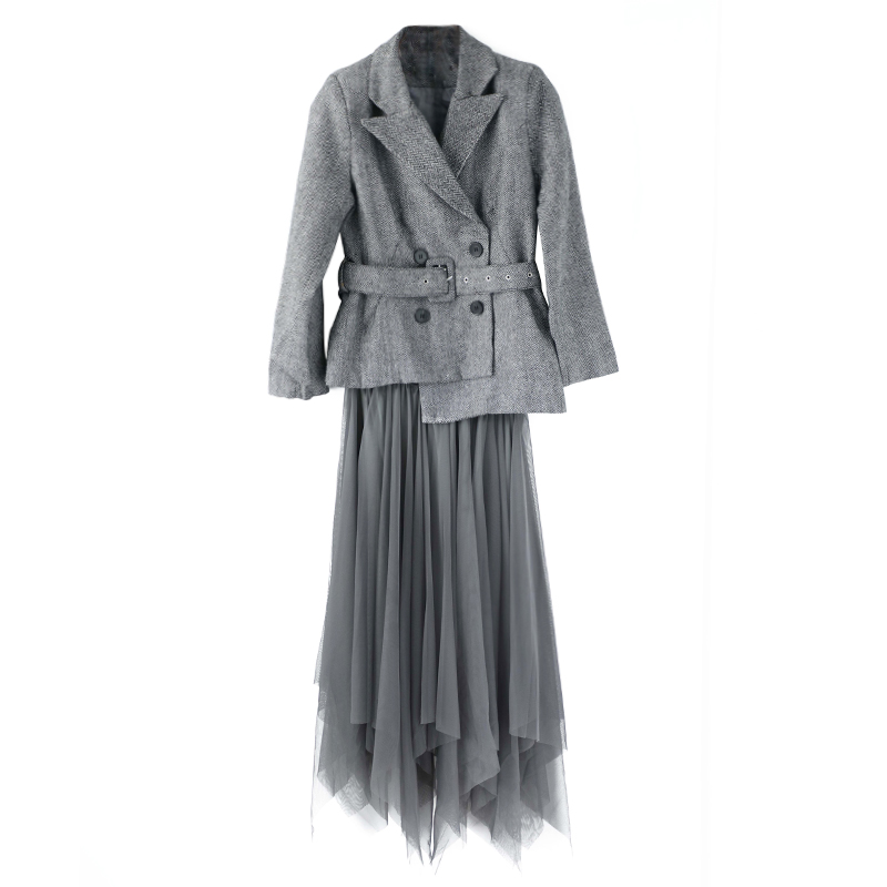 / 名媛氣質2018秋新款收腰小西裝休閑外套百搭不規則網紗半身裙套裝