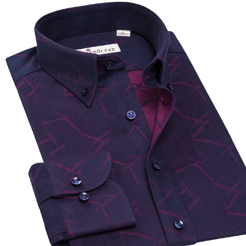 / 竹葉提花色織襯衫男長袖商務休閑中青年男士免燙抗皺襯衣秋季