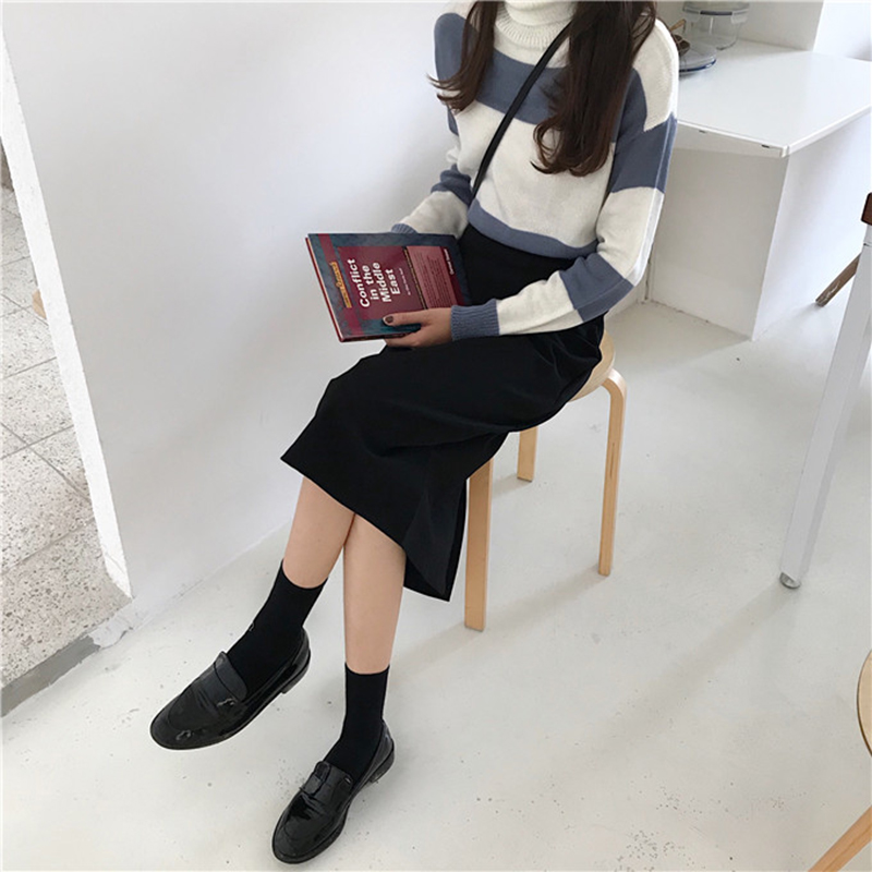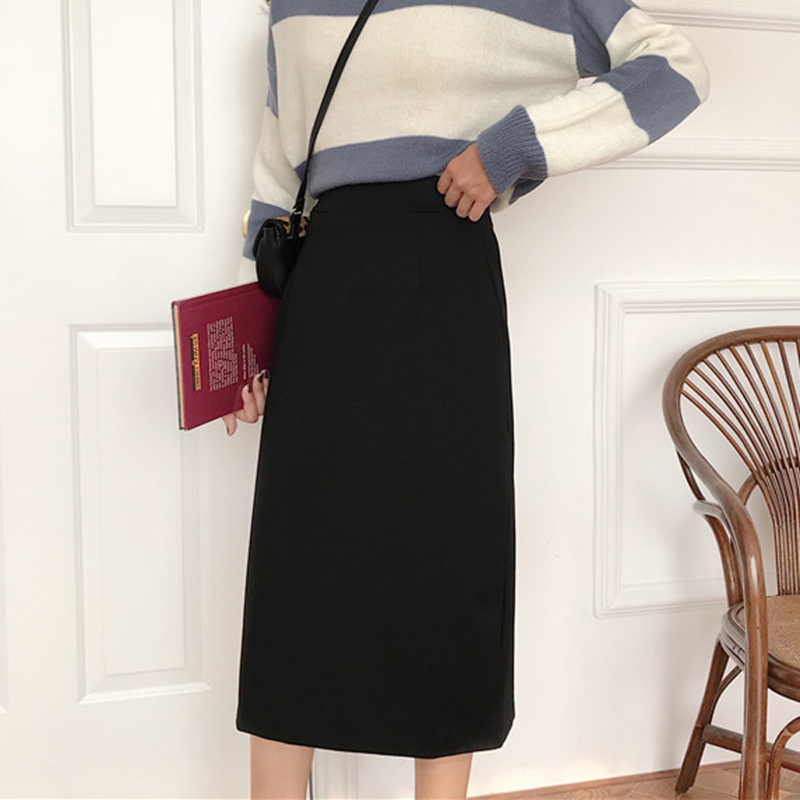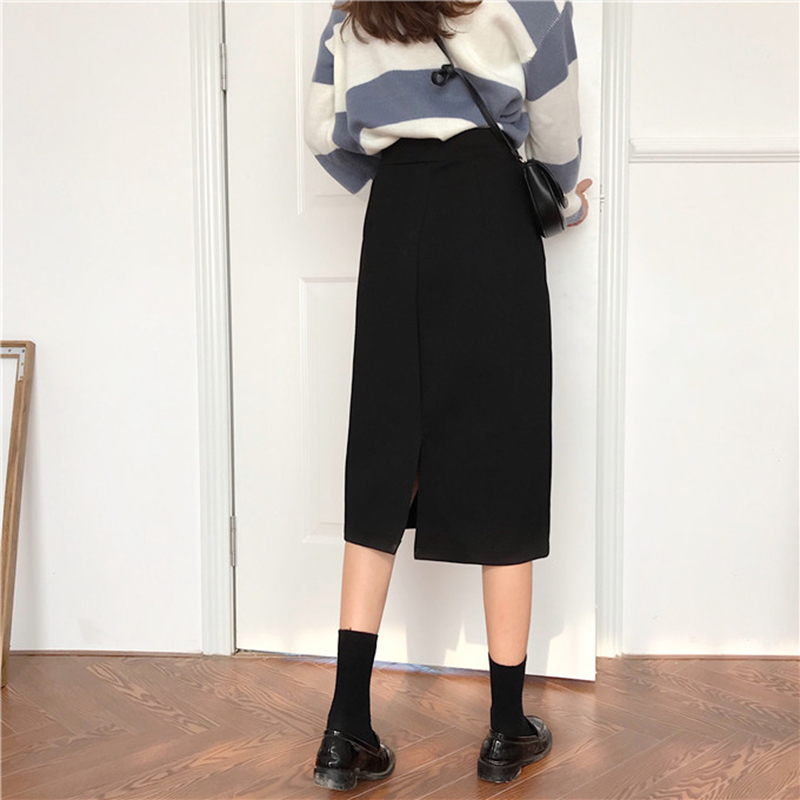 中長款裙子女秋裝2018新款韓版黑色高腰修身顯瘦開叉包臀半身裙子