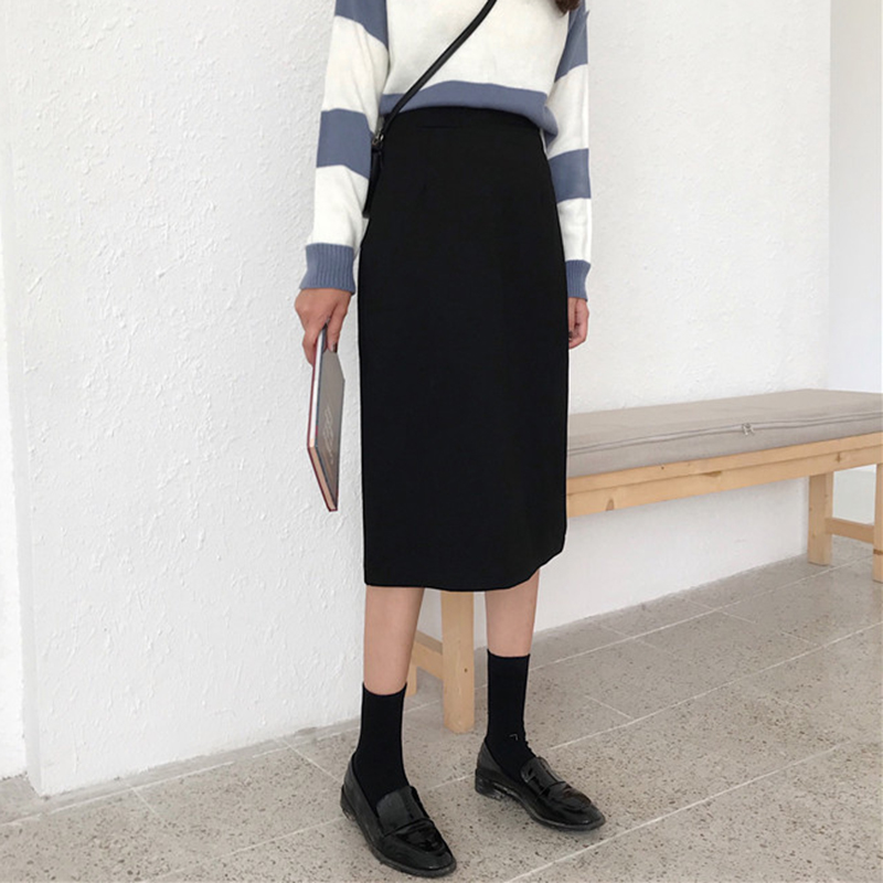 / 中長款裙子女秋裝2018新款韓版黑色高腰修身顯瘦開叉包臀半身裙子