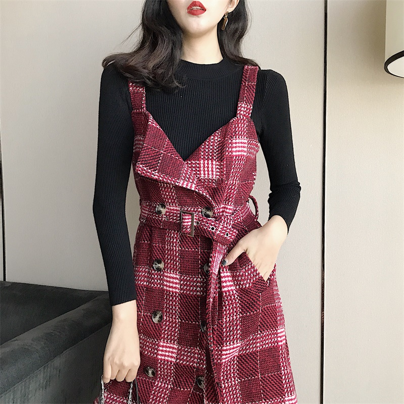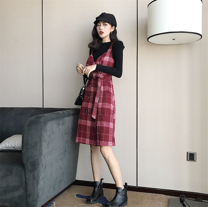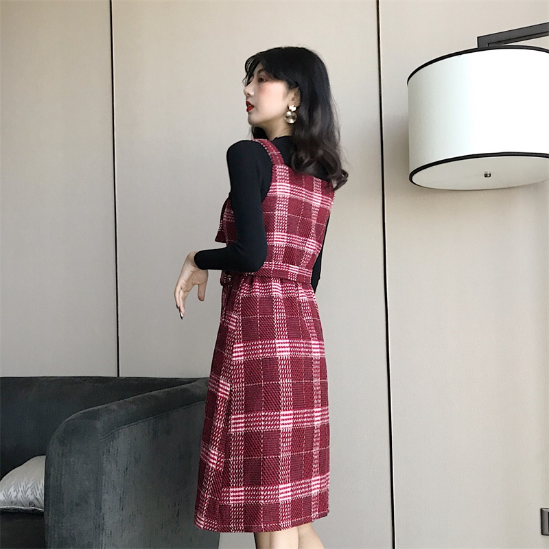 中長裙的長度,上身自帶優雅范,紅格子的紋理,大氣洋氣又很吸睛