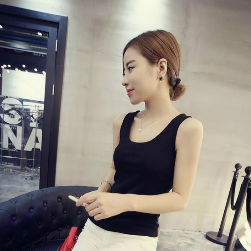 春季女裝短款修身內搭無袖性感吊帶背心純棉黑色打底上衣小衫