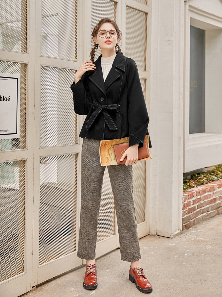 / MG小象短款毛呢外套女新款蝴蝶結寬松上衣黑色2018流行妮子大衣潮