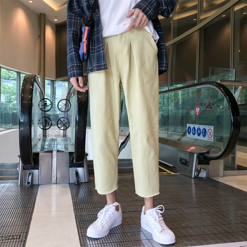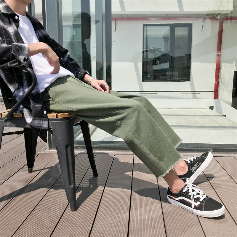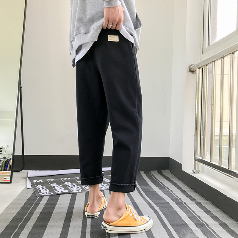 男士秋季闊腿褲韓版潮流九分褲原宿風百搭褲子港風寬松薄款休閑褲
