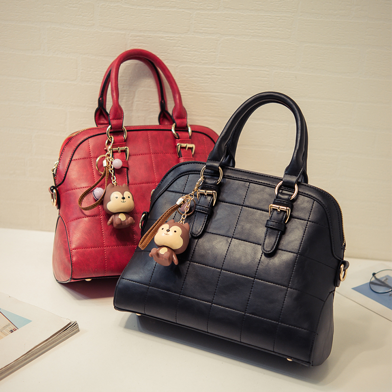 / 新款韓版繡線格子貝殼包時尚單肩女包復古手提包小包包斜挎包