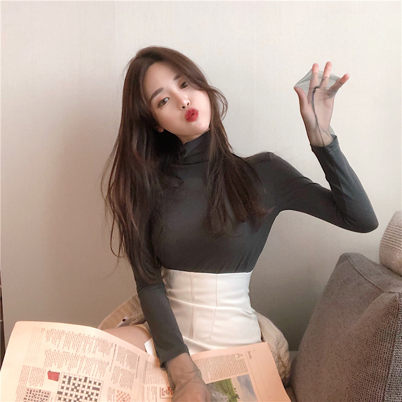 初秋新款女上衣韓版時尚chic基礎款百搭顯瘦高領純色打底衫t恤女