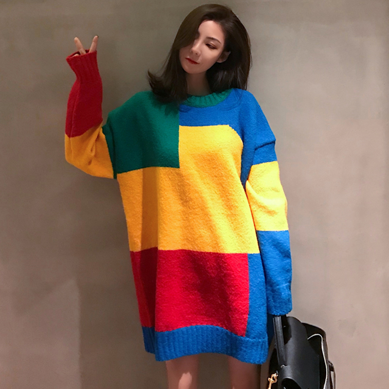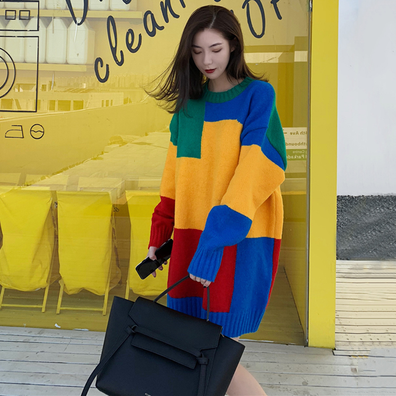 時尚圓領套頭毛衣女秋冬裝2018新款慵懶寬松針織外套學生長袖上衣