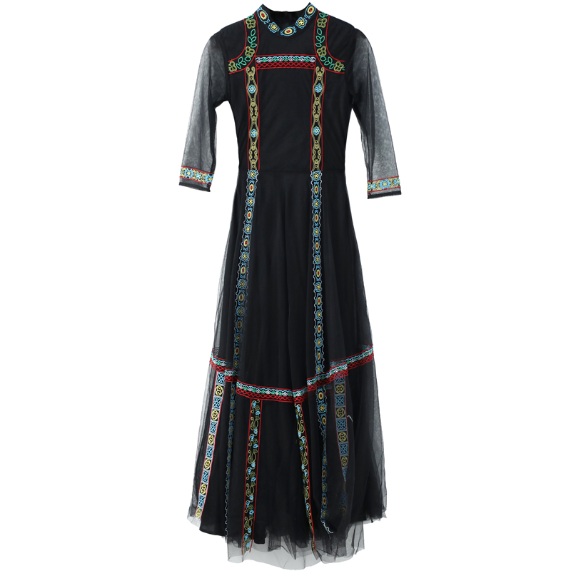 名媛氣質網紗刺繡歐洲站秋款連衣裙繡花長裙歐貨女神范中長款裙子