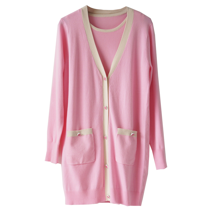 / 淑女氣質2018春季新款韓版修身針織套裝無袖連衣裙長袖開衫兩件套