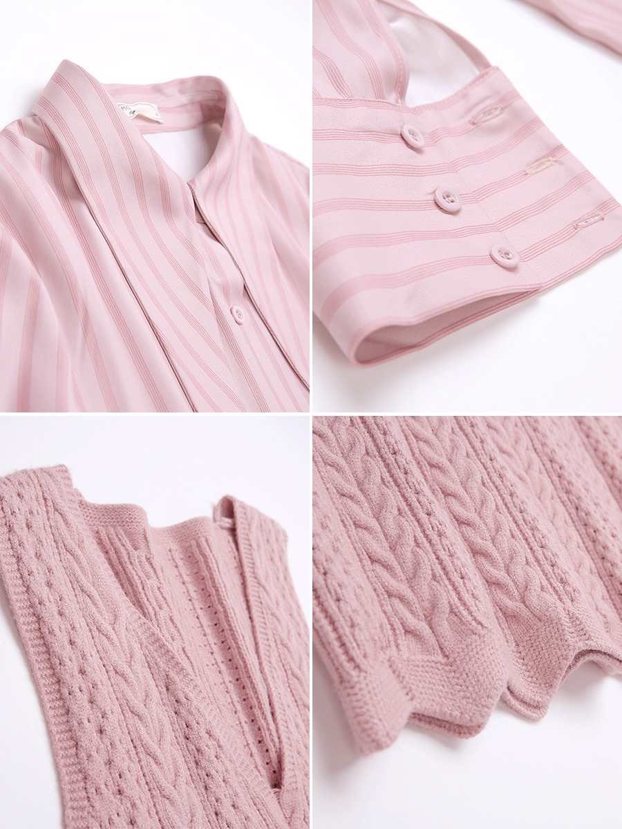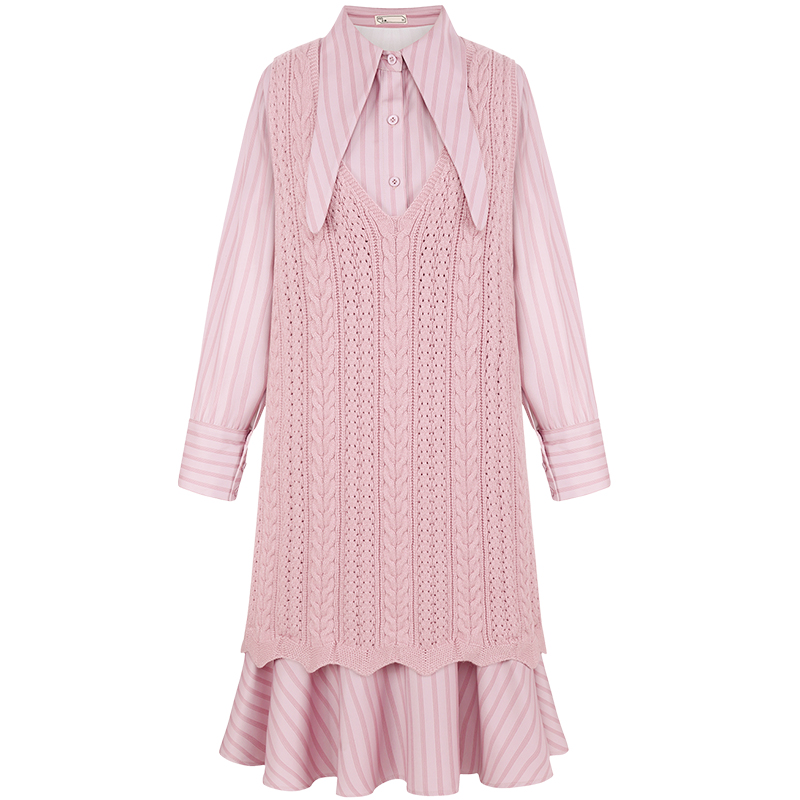 襯衫裙-粉紅色|針織背心-粉紅色