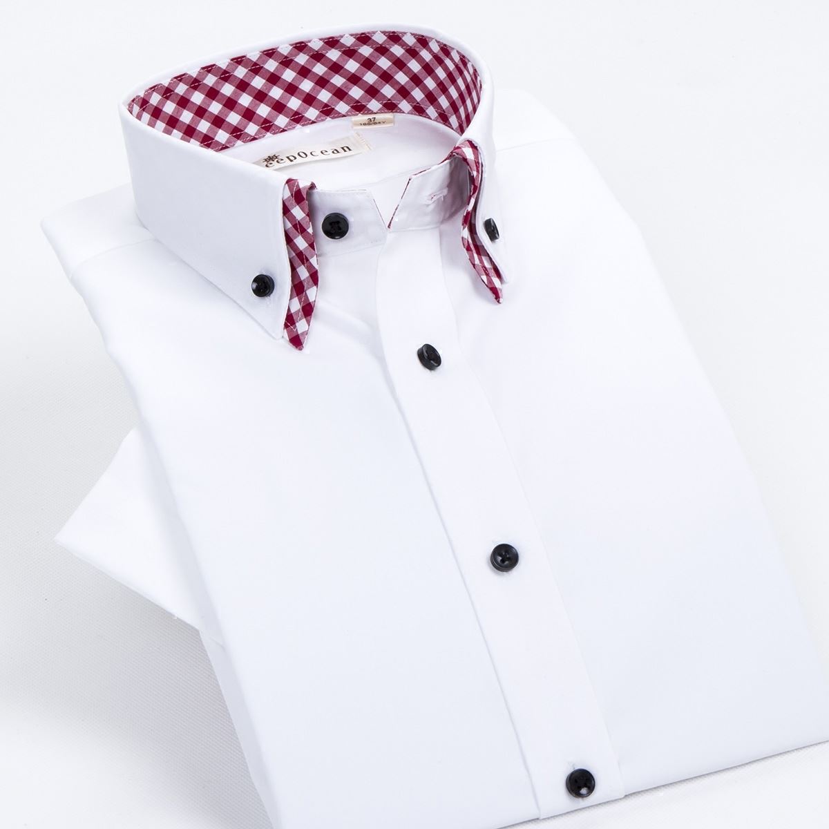 男士黑色襯衫韓版修身商務男式短袖夏季潮男雙層領純棉半袖白襯衣