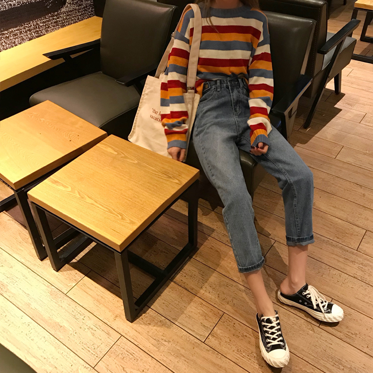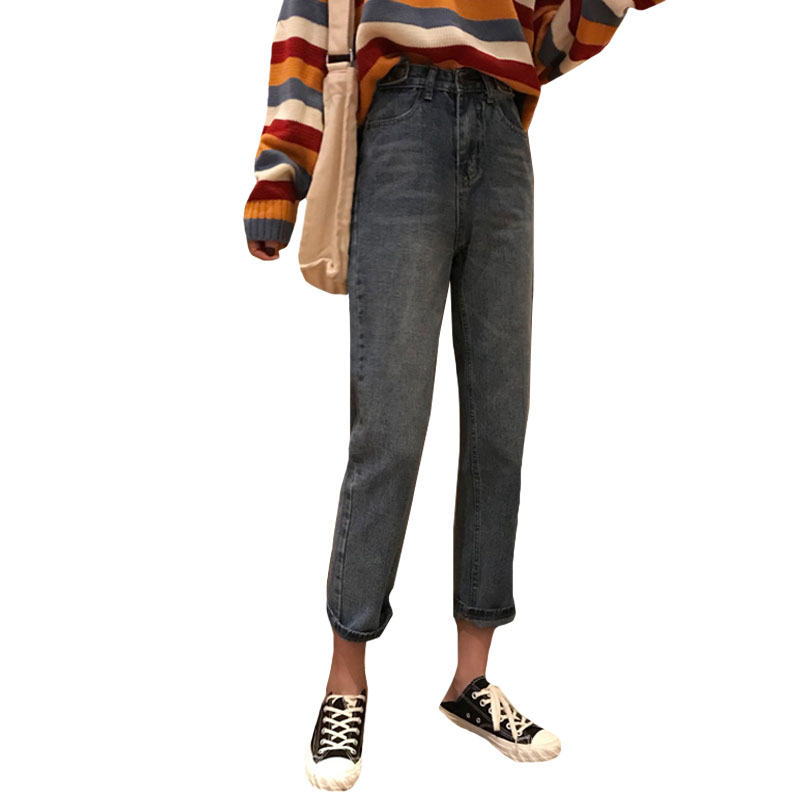 / 秋季2018新款女裝韓版寬松顯瘦牛仔褲高腰復古直筒褲闊腿褲九分褲