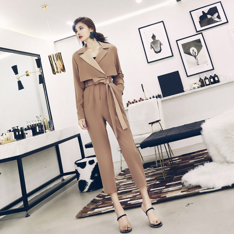 歐洲站2018秋裝新款時尚休閑高腰顯瘦工裝西裝女連體褲小腳褲子