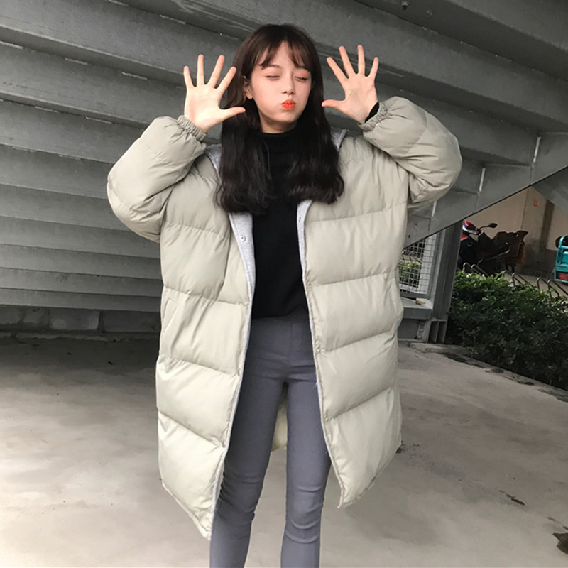外套冬女裝2018新款加厚保暖棉服韓版寬松中長款排扣純色連帽棉衣
