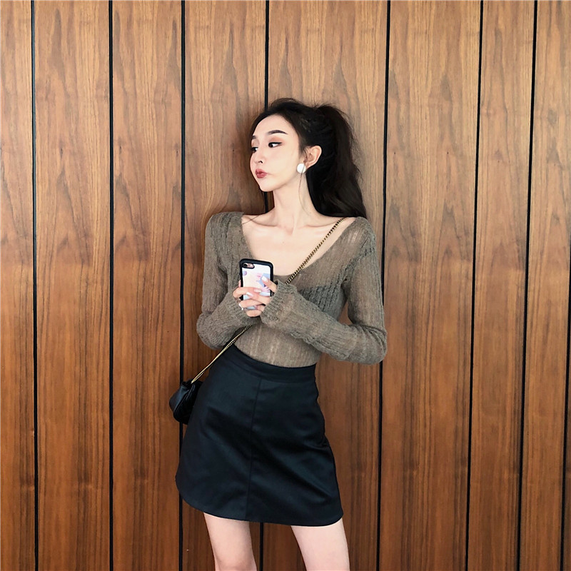 2018新款韓版秋季短裙女chic風復古簡約百搭高腰顯瘦a字半身皮裙