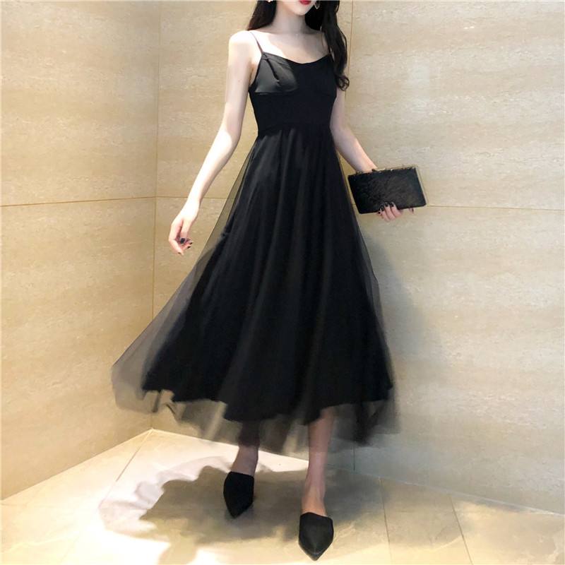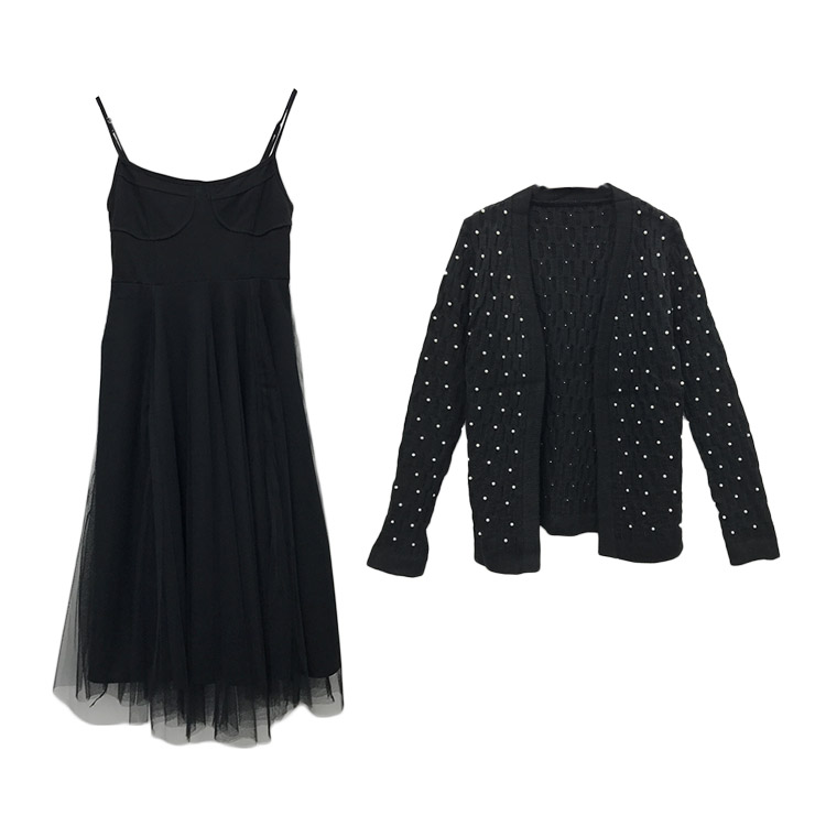 / 韓國復古風秋裝女2018新款重工珍珠毛衣外套+修身網紗吊帶連衣裙