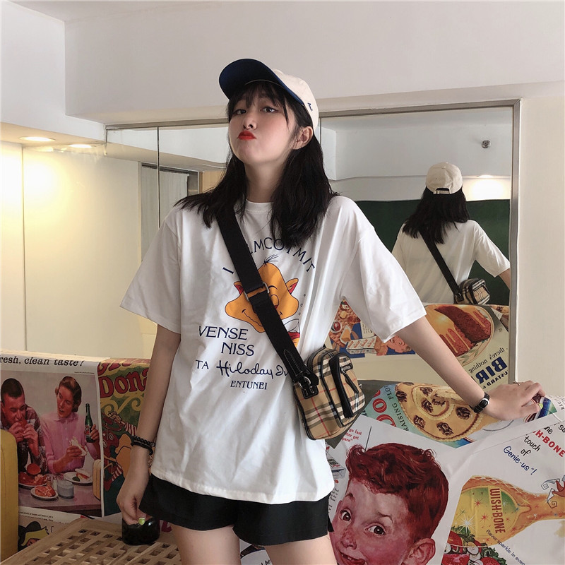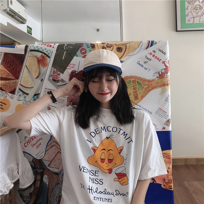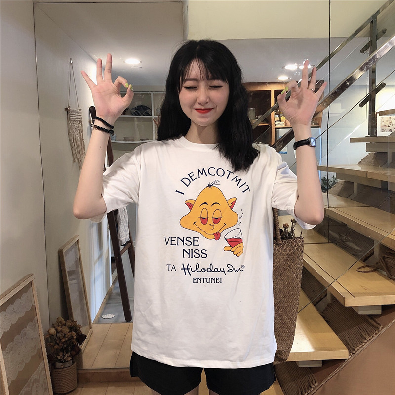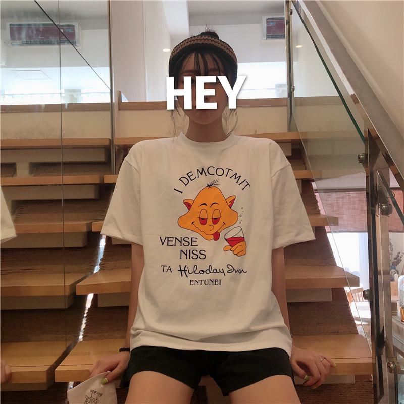 / 馨幫幫自制 經典美式可愛卡通趣味印花tee恤女韓版休閑百搭上衣潮