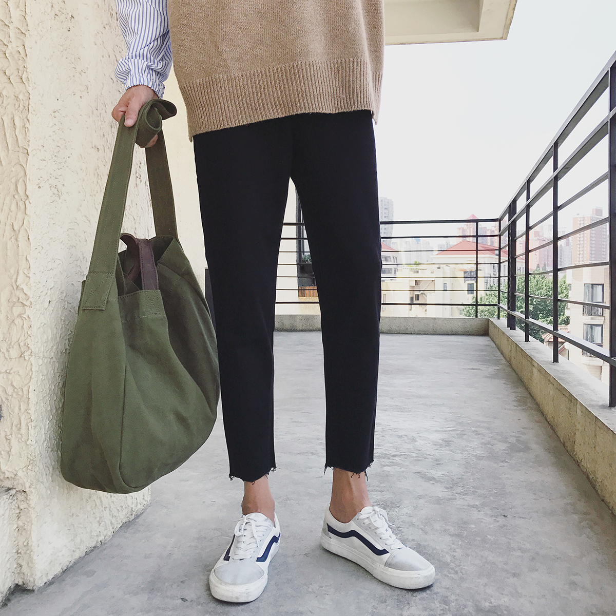 / 文藝男女店男士秋季牛仔褲韓版潮流黑色百搭褲子男學生九分褲男褲