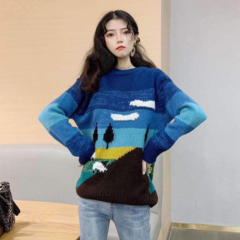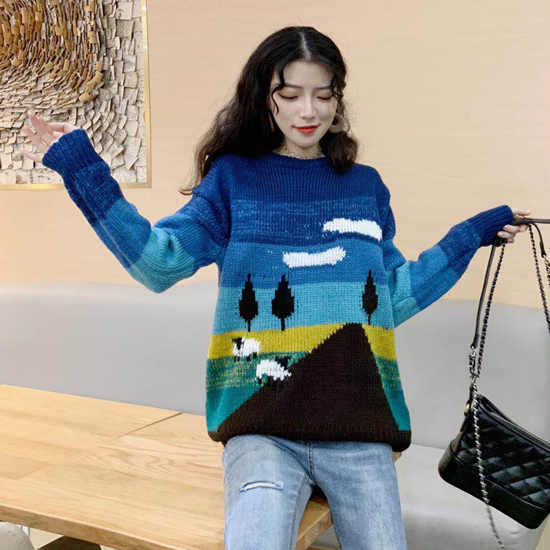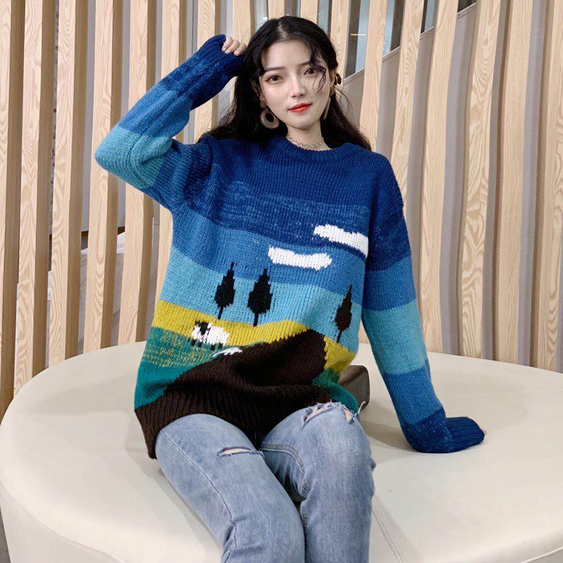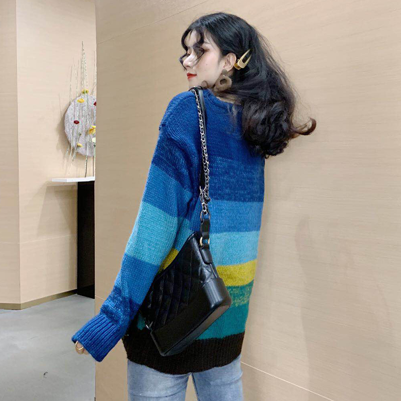 秋冬女裝2018新款慵懶風寬松撞色毛衣外套chic網紅套頭針織衫上衣
