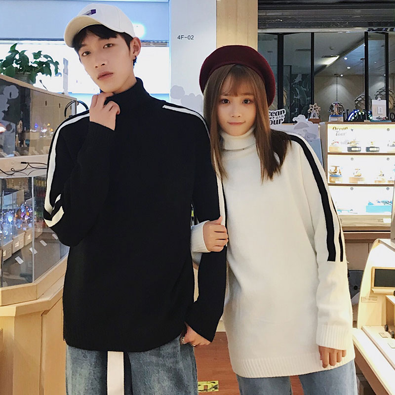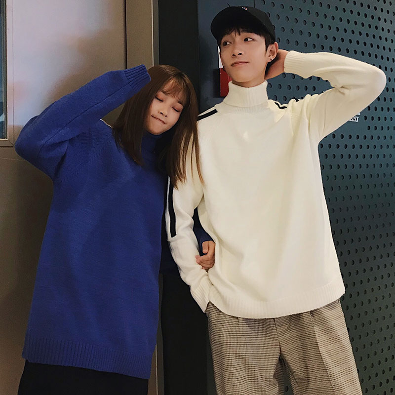 / 秋冬季情侶高領針織衫毛衣外套男裝韓版潮流打底衫學生懶惰風寬松