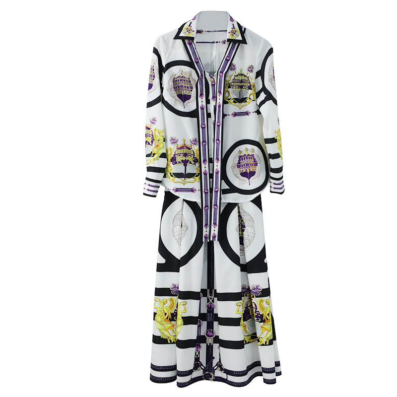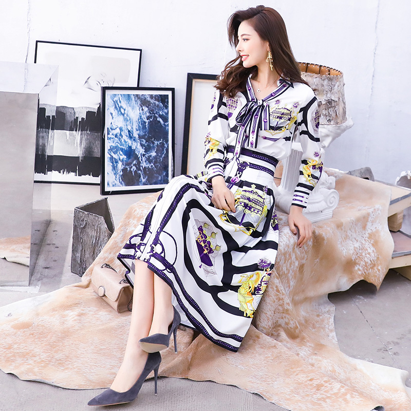秋裝女2018新款韓版修身顯瘦印花襯衫時尚套裝裙氣質兩件套連衣裙
