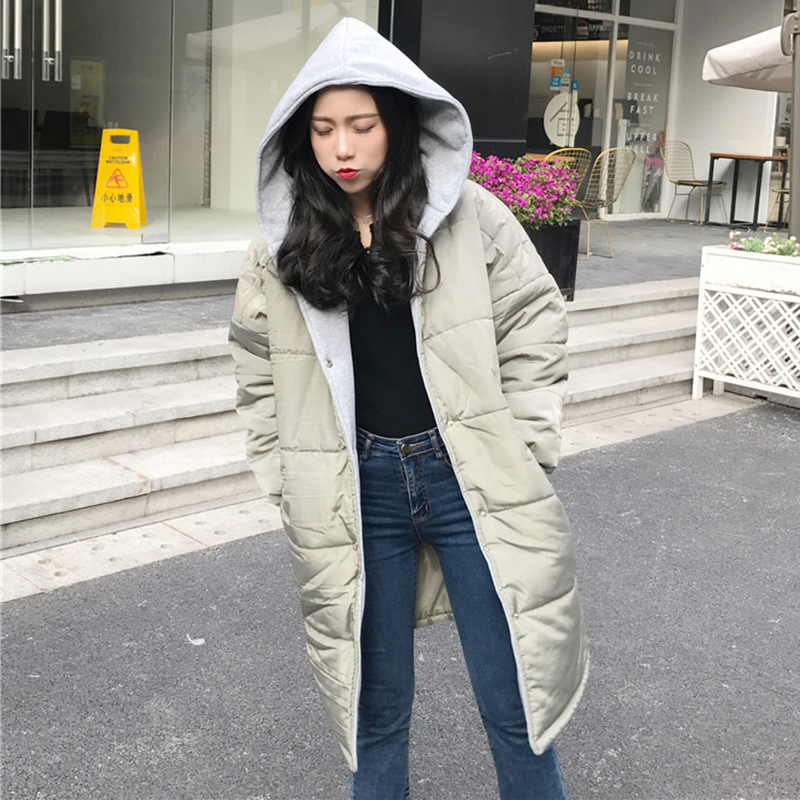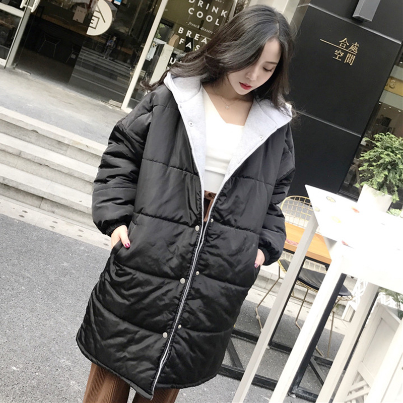 / 休閑連帽棉襖2018冬季女裝新款學生過膝黑色面包服寬松棉衣外套潮