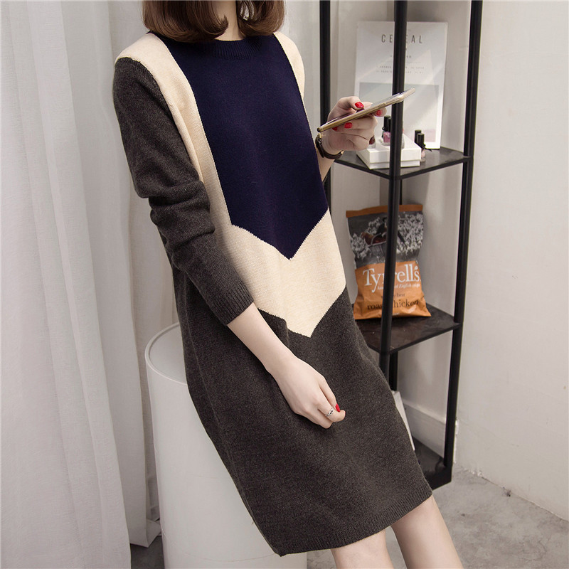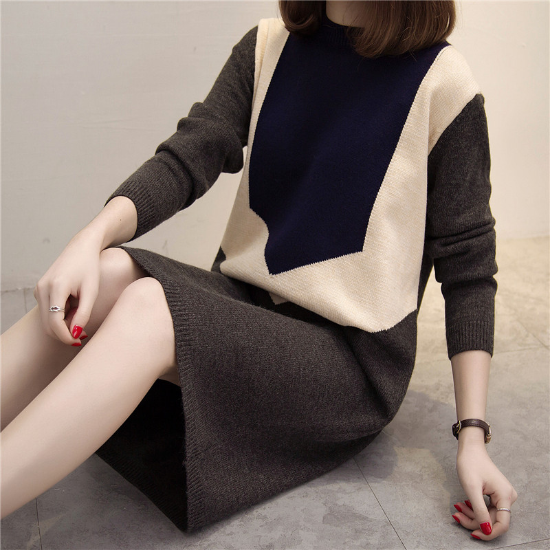 / 女裝韓版中長款套頭毛衣女秋冬寬松針織衫打底毛衣裙裝新款潮