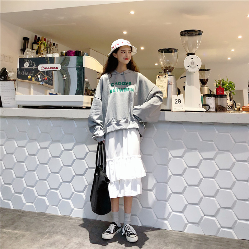 / 韓版時尚休閑套裝秋季女裝字母長袖衛衣外套+荷葉邊半身裙兩件套