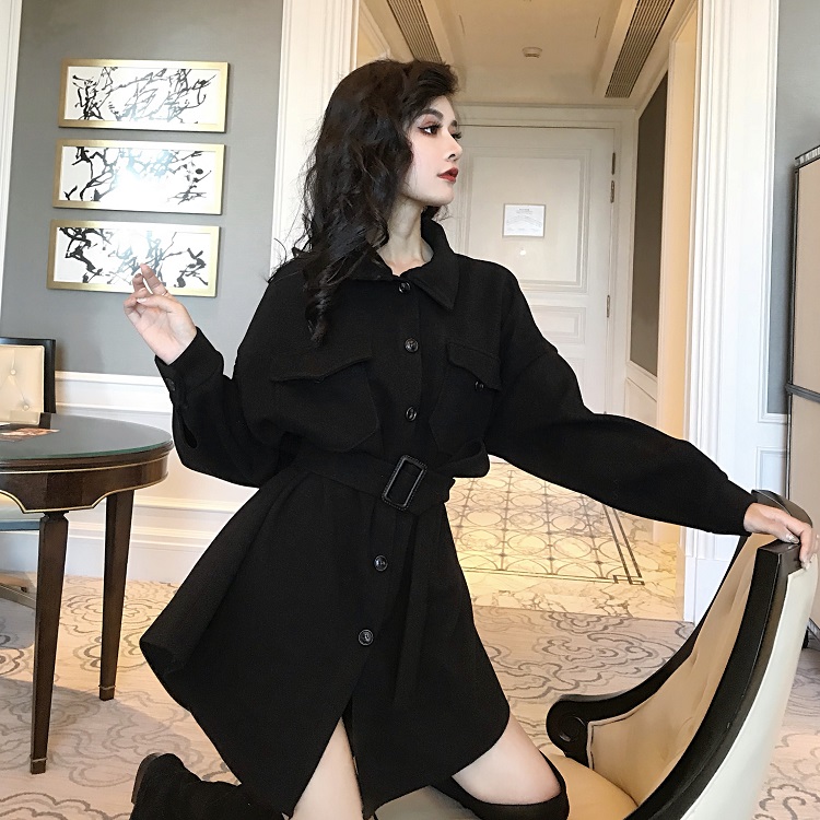 胸部有兩個口袋的設計很帥氣,腰帶系起來視覺上可以起到修身顯瘦的效果