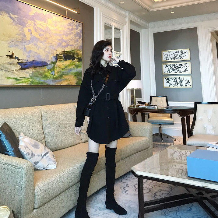 微喇落肩袖設計,弧形下擺搭配一雙長筒靴,上身效果非常贊!
