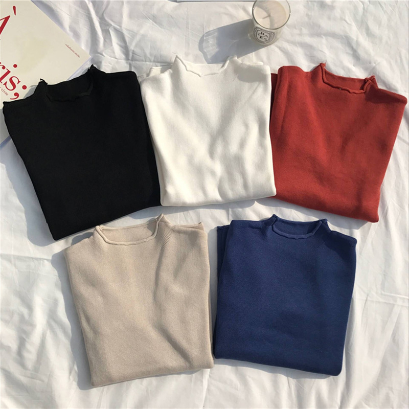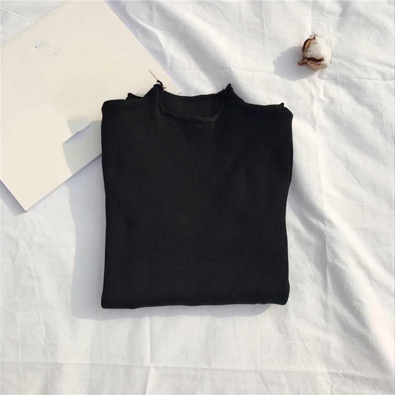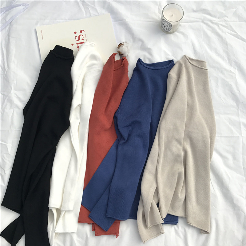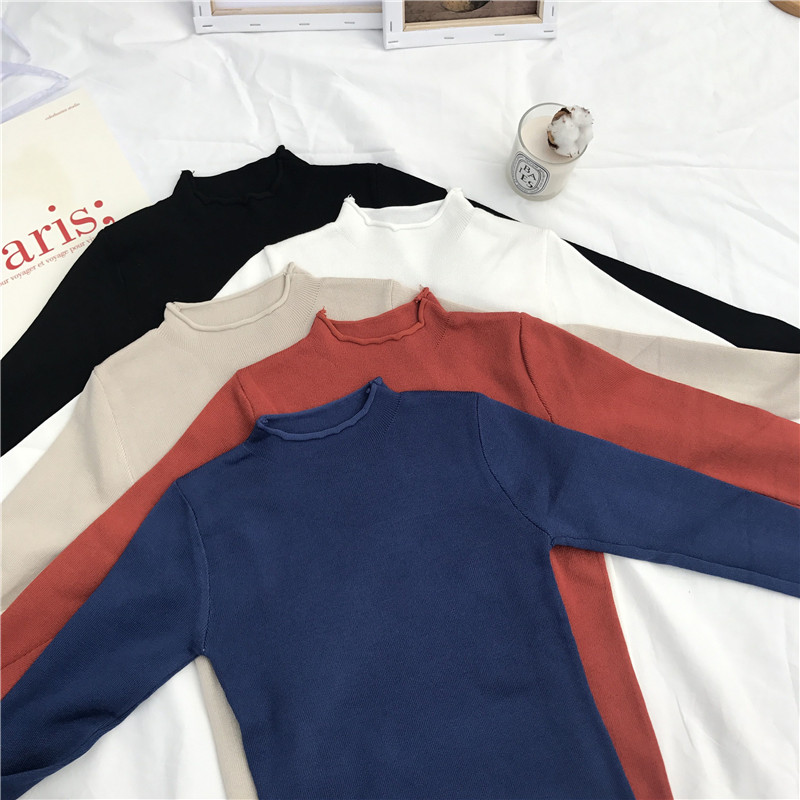 chic半高領卷邊打底毛衣女秋冬裝2018新款韓版時尚顯瘦內搭針織衫
