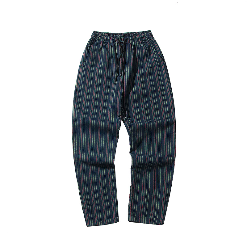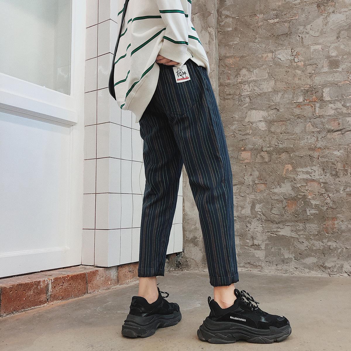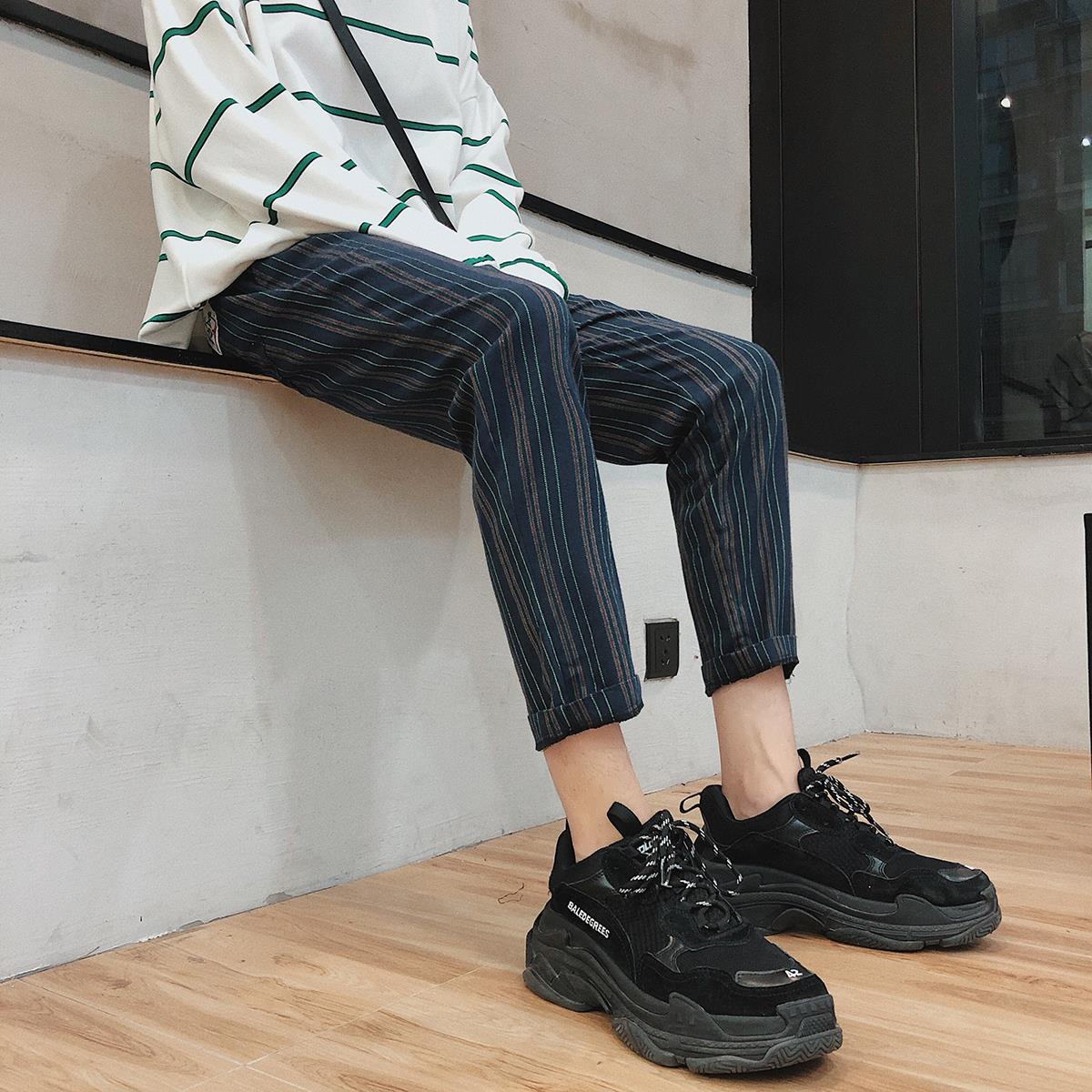 古著vintage褲子男條紋九分褲秋季韓版運動褲寬松哈倫潮流休閑褲