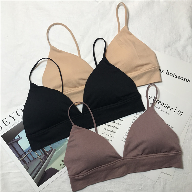 / 夏季2018新款簡約舒適無鋼圈三角杯細帶薄款文胸含襯墊睡眠內衣女