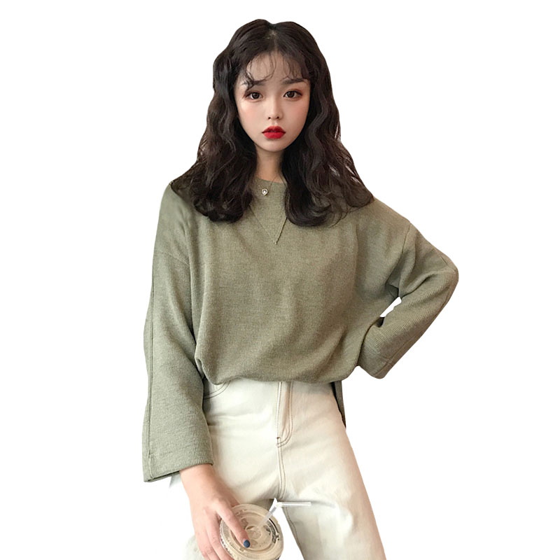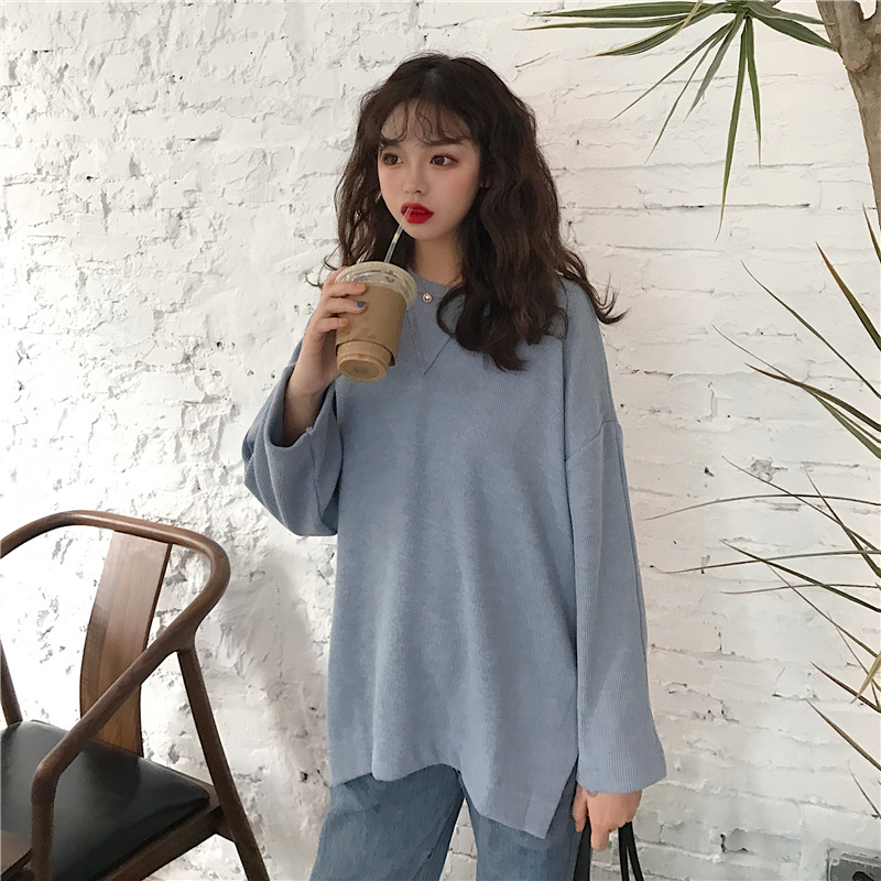 / 秋季韓版學院風寬松休閑純色坑條套頭pp home超火衛衣上衣外套女
