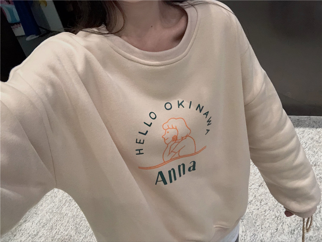 衛衣女2018秋冬季新款韓版寬松百搭抓絨長袖套頭減齡字母印花上衣