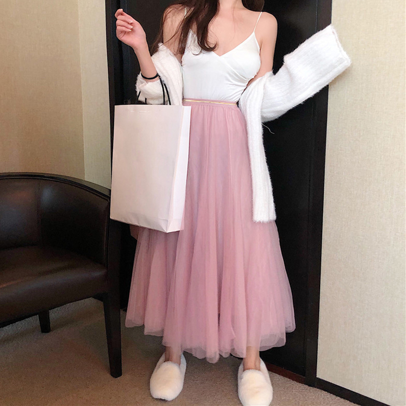 白色毛衣開衫|藍色毛衣開衫|粉色網紗裙|白色網紗裙