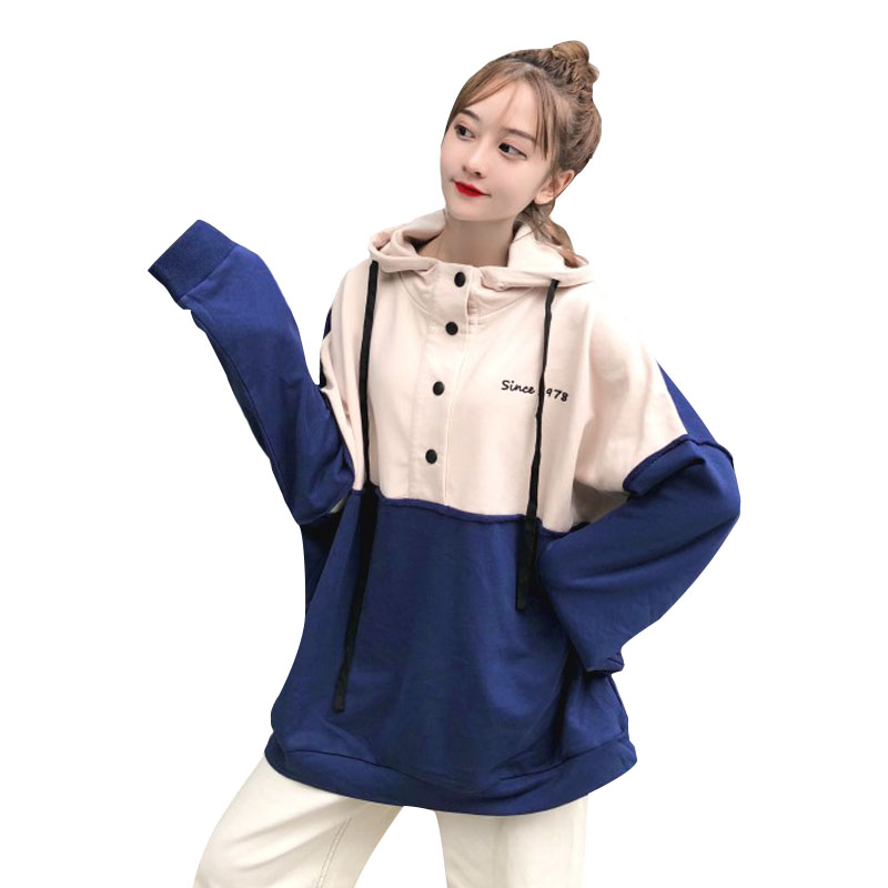 / 秋冬女裝韓版中長款學院風寬松拼接撞色連帽套頭超火衛衣上衣外套