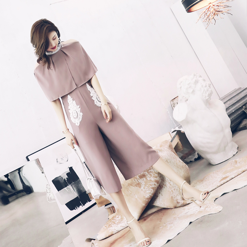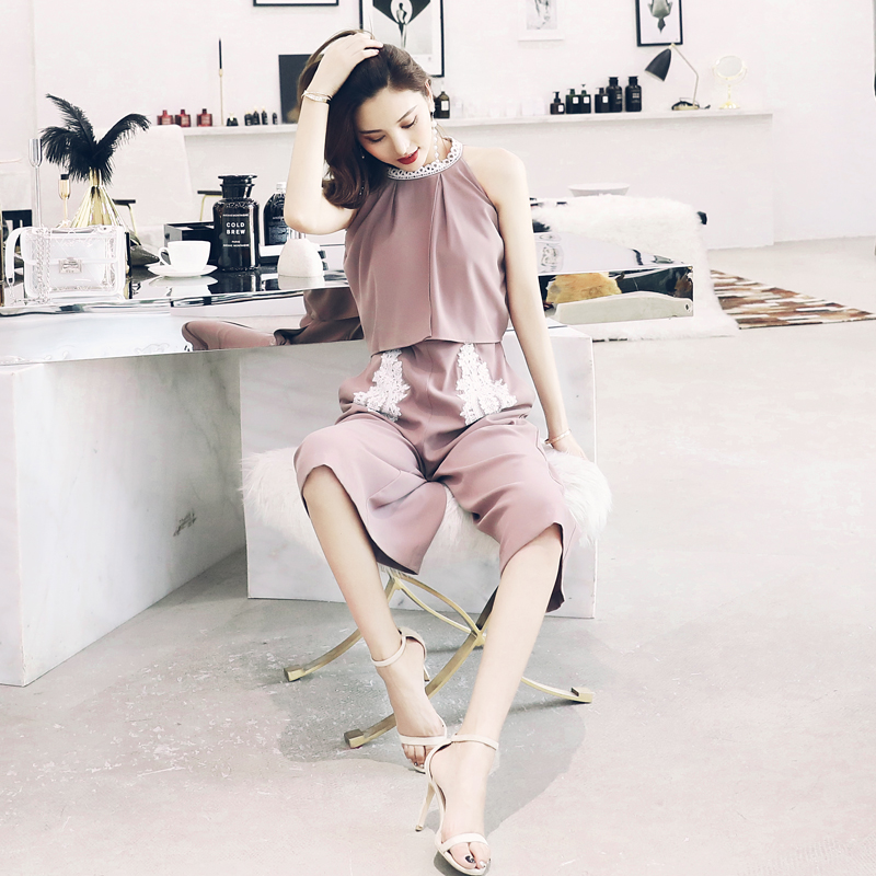 / 歐洲站名媛氣質港味連體褲女夏高腰顯瘦垂感闊腿褲2018新款七分褲