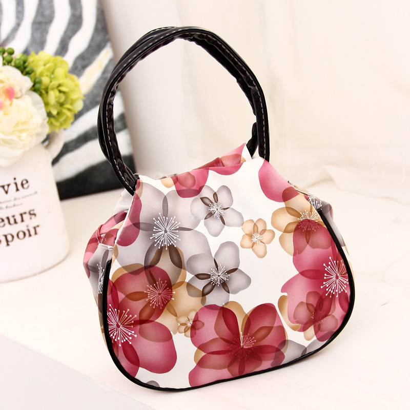 雙拉鏈休閑花色手提pu皮包包小包女包中老年媽媽包買菜手拎包包