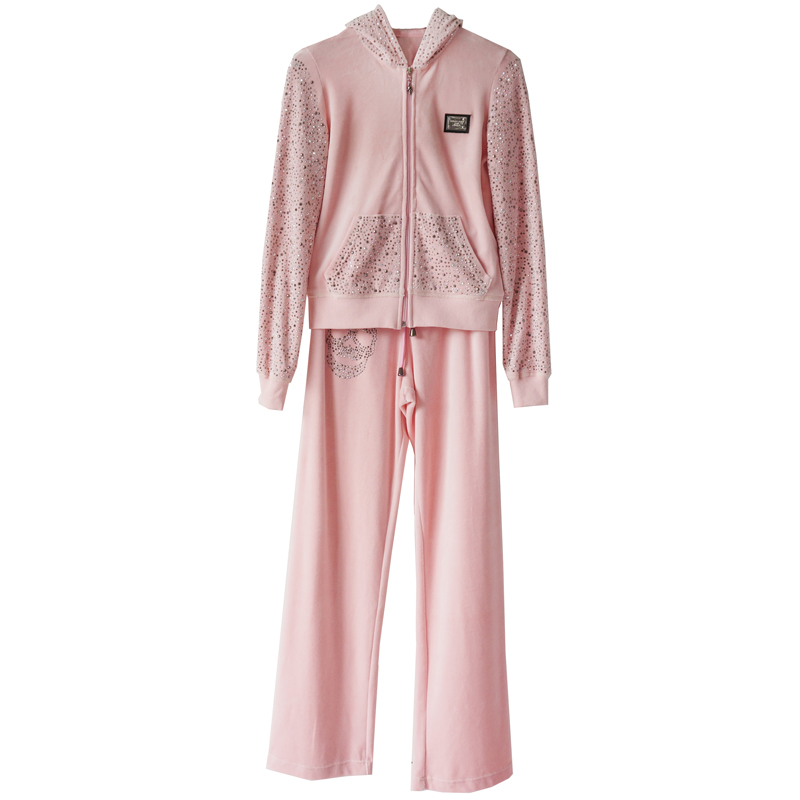 2018春季新款顯瘦絲絨套裝時尚休閑百搭運動套裝兩件套女潮歐洲站
