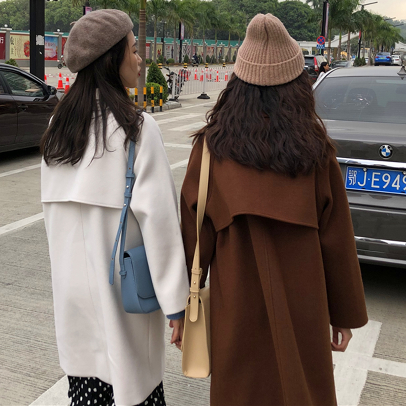 / 2018流行毛呢外套女秋冬裝新款赫本大衣中長款風衣休閑開衫上衣潮
