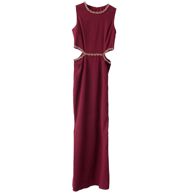 2018夏裝新款開叉性感修身顯瘦無袖長款露腰心機連衣裙紅色禮服裙